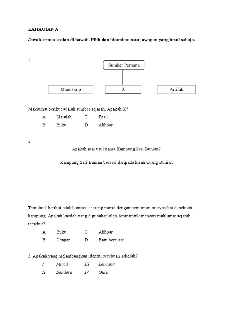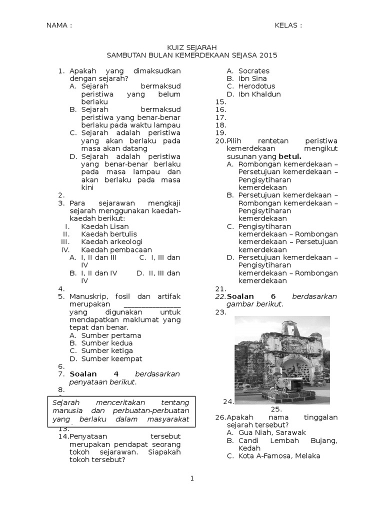 Soalan sejarah tahun 4 ,tahun 5 dan tahun 6 april 16, 2016. Text of kuiz sirah tahun 1 & 2. Soalan latihan sejarah tingkatan 4 bab 3; Contoh soalan sains upsr kertas 2; Sejarah kemunculan tamadun awal manusia.
