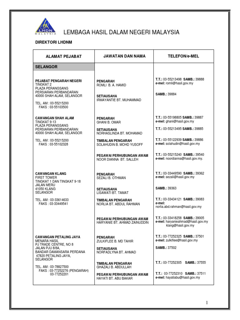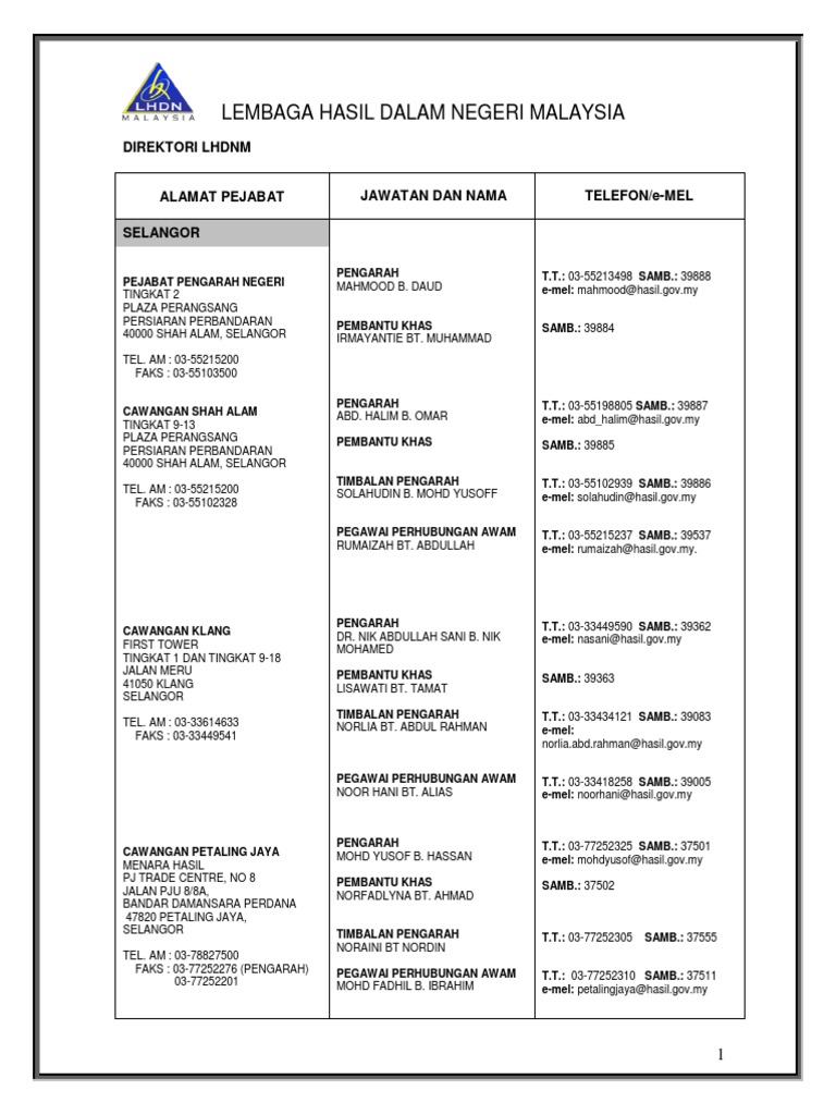 Senarai Cawangan Lembaga Hasil Dalam Negeri Lhdn Selangor Zul Muhammad from zulmuhammad.com Maybe you would like to learn more about one of these? Check spelling or type a new query. We did not find results for:
